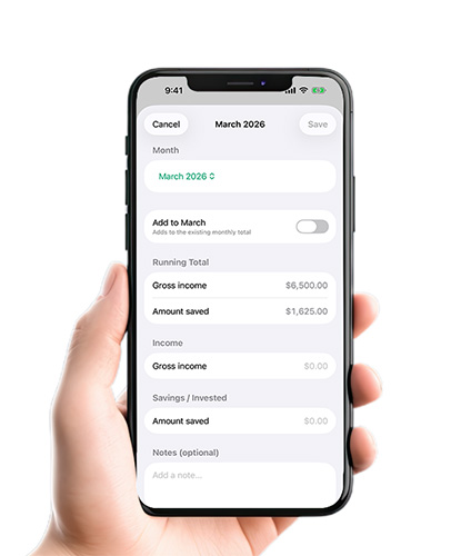 Svngs+ distills your financial picture into one meaningful number. Enter your monthly income and savings — the app does the rest, showing your rate at a glance every time you open it.